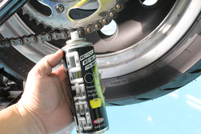 | ここでちょっと、メンテナンス剤【CURE2】のご紹介! 頑固なチェーンオイルの飛び散りも何のその!!シュッと一吹き、サッと一拭き、まぁキレイ! 絶賛発売中!! ¥2,480 |